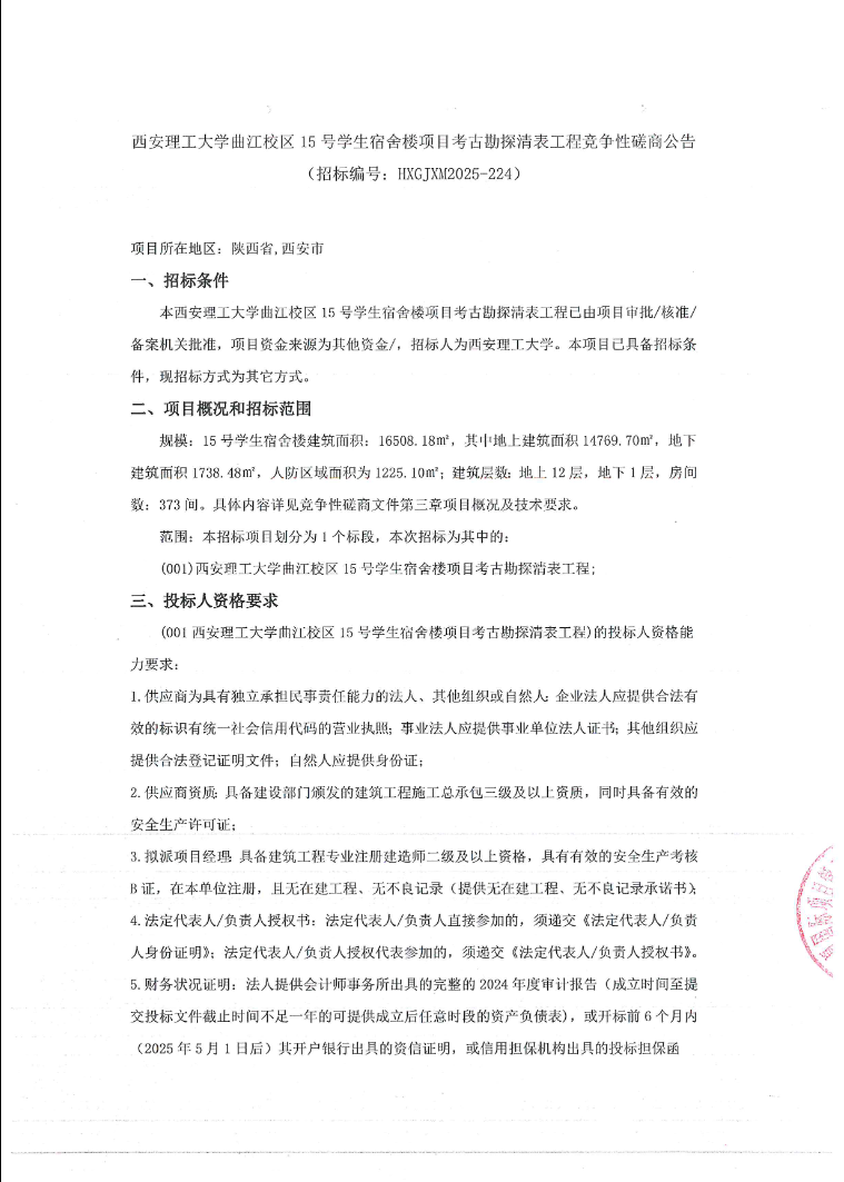 【清表工程】KY开元集团官网曲江校区15号学生宿舍楼项目考古勘探清表工程竞争性磋商公告