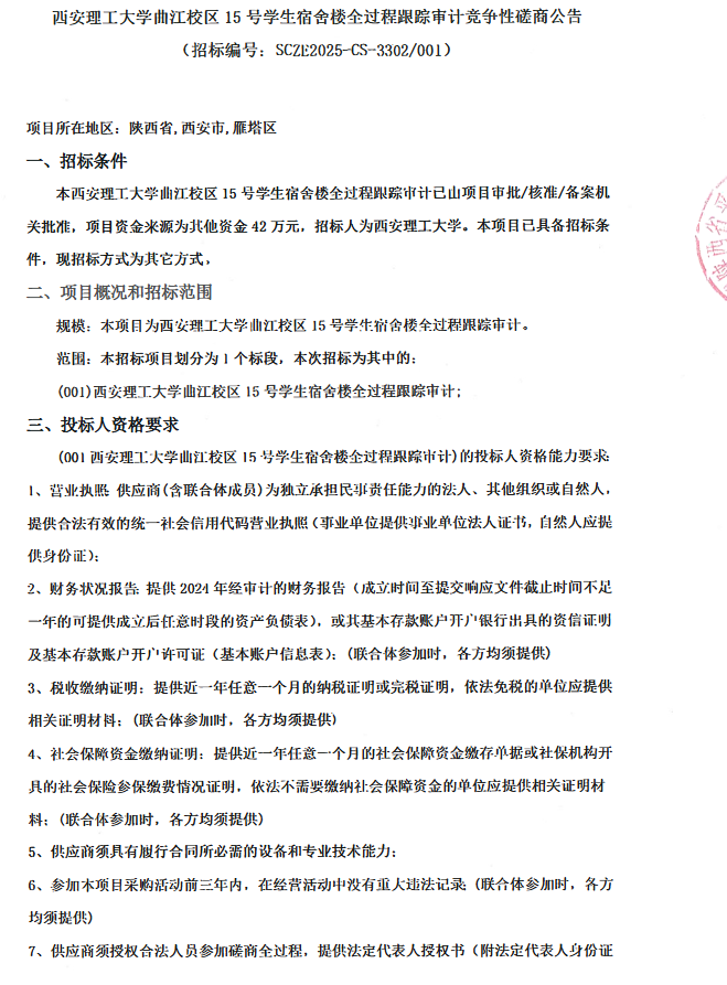 【全过程审计】KY开元集团官网曲江校区15号学生宿舍楼全过程跟踪审计竞争性磋商公告