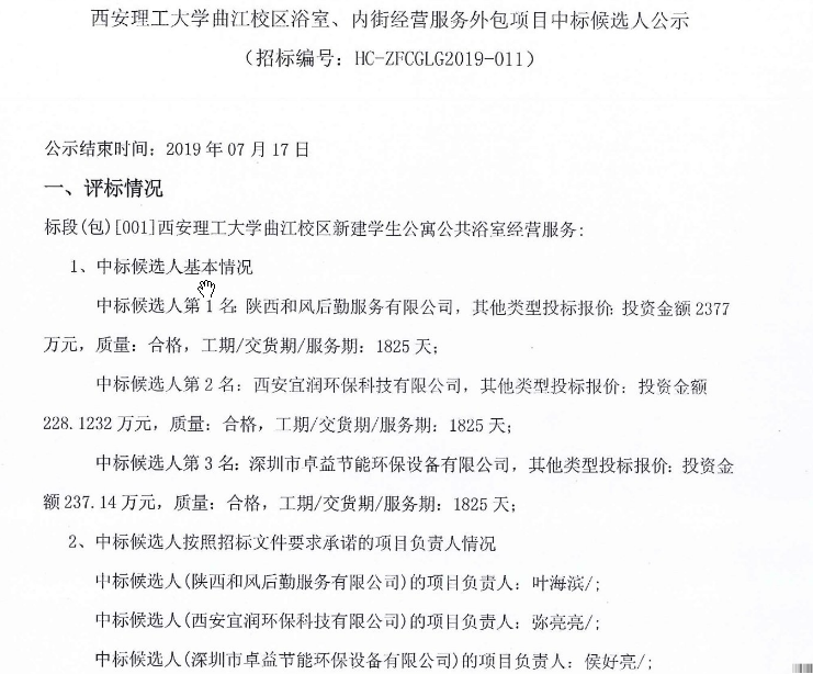 【服务外包】KY开元集团官网曲江校区浴室、内街经营服务外包项目中标候选人公示