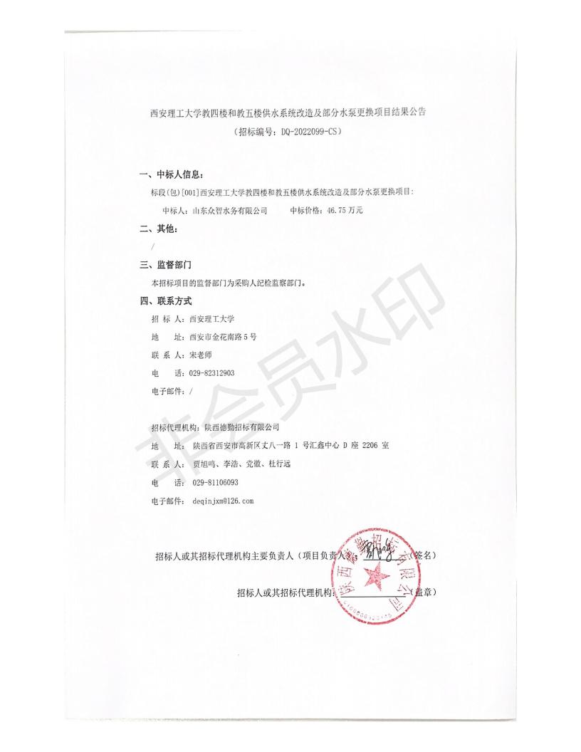 【供水系统改造】KY开元集团官网教四楼和教五楼供水系统改造及部分水泵更换项目结果公告