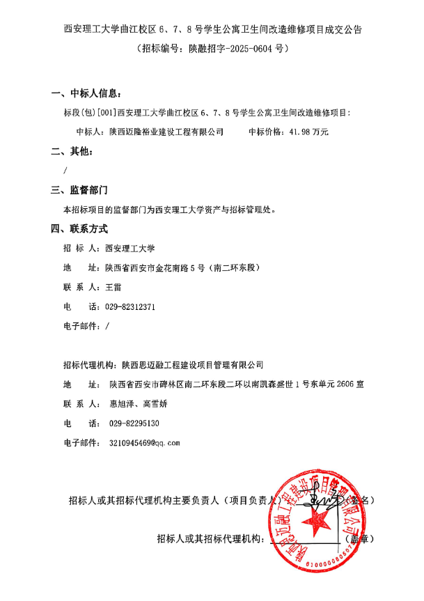 【改造维修】KY开元集团官网曲江校区6、7、8号学生公寓卫生间改造维修项目成交公告