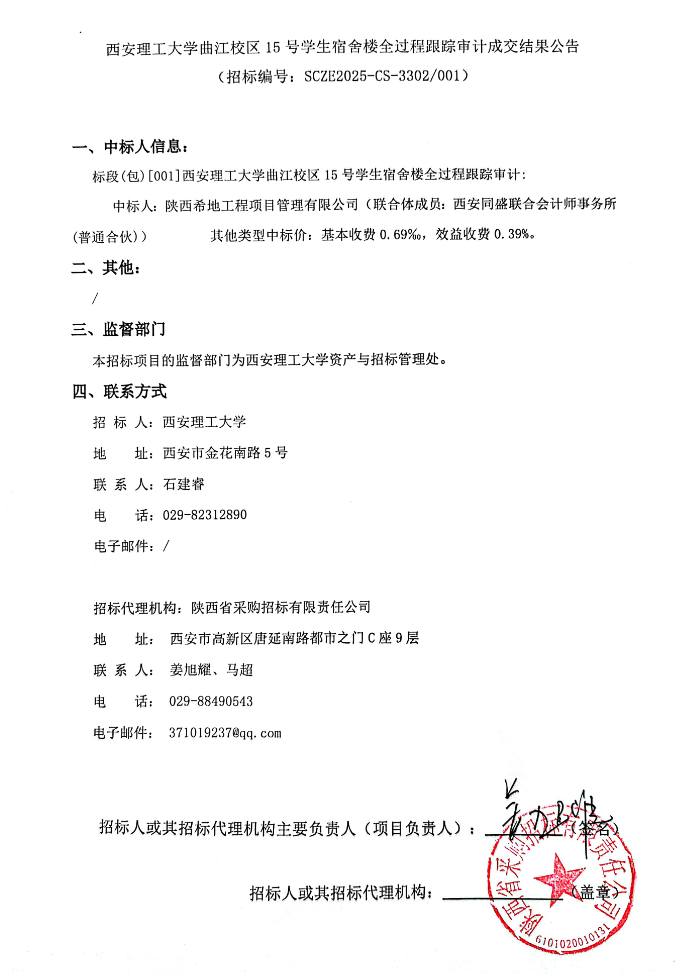【全过程审计】KY开元集团官网曲江校区15号学生宿舍楼全过程跟踪审计成交结果公告