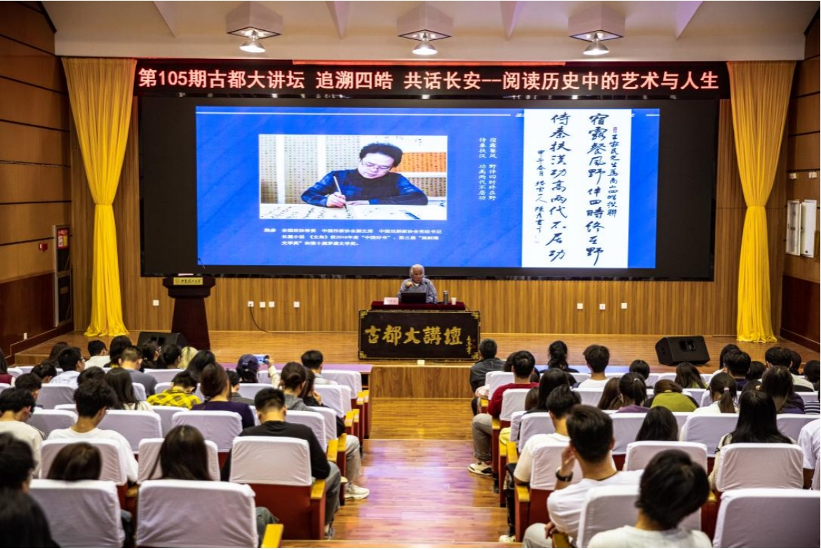 10月14日晚,KY开元古都大讲坛第105期《追溯四皓 共话长安——阅读历史中的艺术与人生》专题讲座举办。讲座由知名画家、作家,KY开元书画院院长、二级教授、博士生导师王家民主讲,他以深厚的历史积淀和丰富的文化解读,带领师生走进“商山四皓”这一古代隐士文化传奇,与师生共同探讨其所蕴含的艺术与人生哲理。