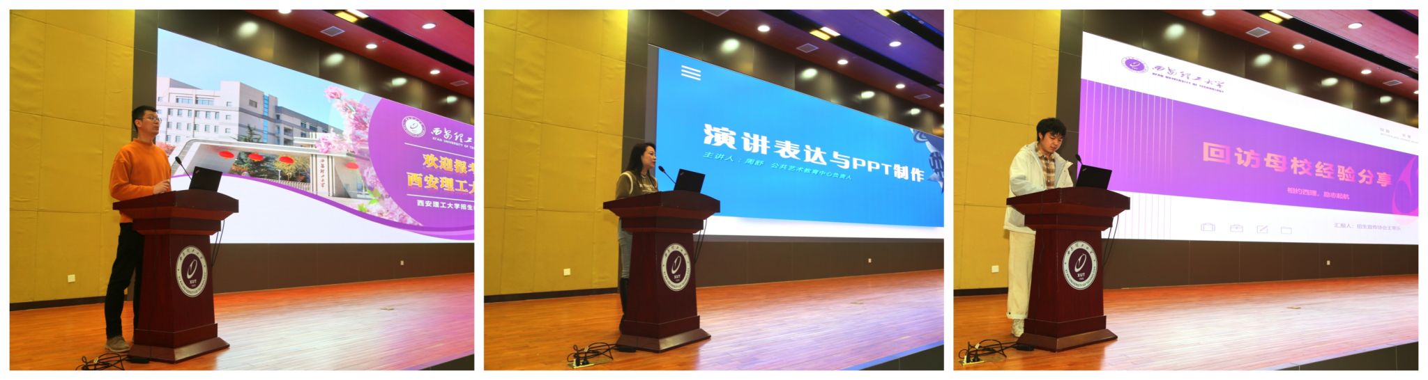 培训环节,学生代表分享了历年优秀回访案例;招生办公室司腾飞解读了本科招生政策;校公共艺术教育中心周舒从演讲与表达、PPT设计制作两大板块进行了系统培训。