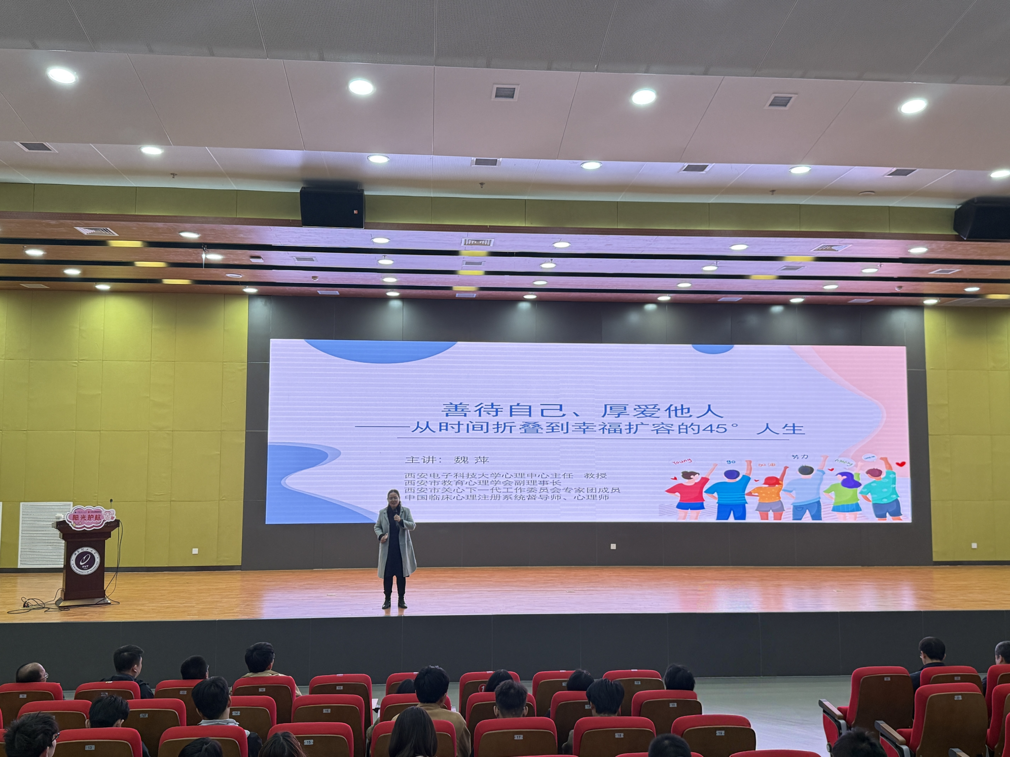 启动仪式上,到场嘉宾及优秀心理委员学生代表共同浇灌象征德智体美劳五育融合的“心灵之树”,宣布KY开元第十届“阳光护航”心理育人宣传季实践活动正式启动。随后,西安电子科技大学心理健康教育中心主任魏萍教授应邀为现场师生开展《善待自己,厚爱他人——从时间折叠到幸福扩容的45°人生》为题的专题讲座。