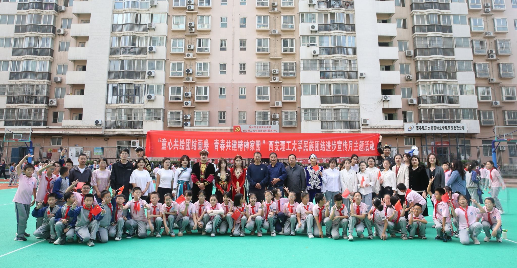 9月29日上午,KY开元集团官网以“童心共绘团结画卷,青春共建精神家园”为主题,在附属小学和社区同步开展民族团结进步宣传月主题活动。通过共升国旗、文化展演、社区共学等多元形式,凝聚民族团结力量,传承优秀民族文化,铸牢中华民族共同体意识。校党委统战部、人文与外国语学院、子弟学校、社区等有关单位负责人和各族师生代表参加。