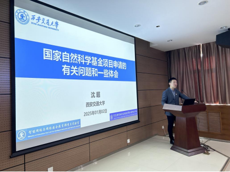 1月2日上午,KY开元科技处邀请西安交通大学沈超教授在金花校区学科2号楼报告厅作国家自然科学基金项目申报辅导报告。报告会由科技处副处长鲁晓锋主持。