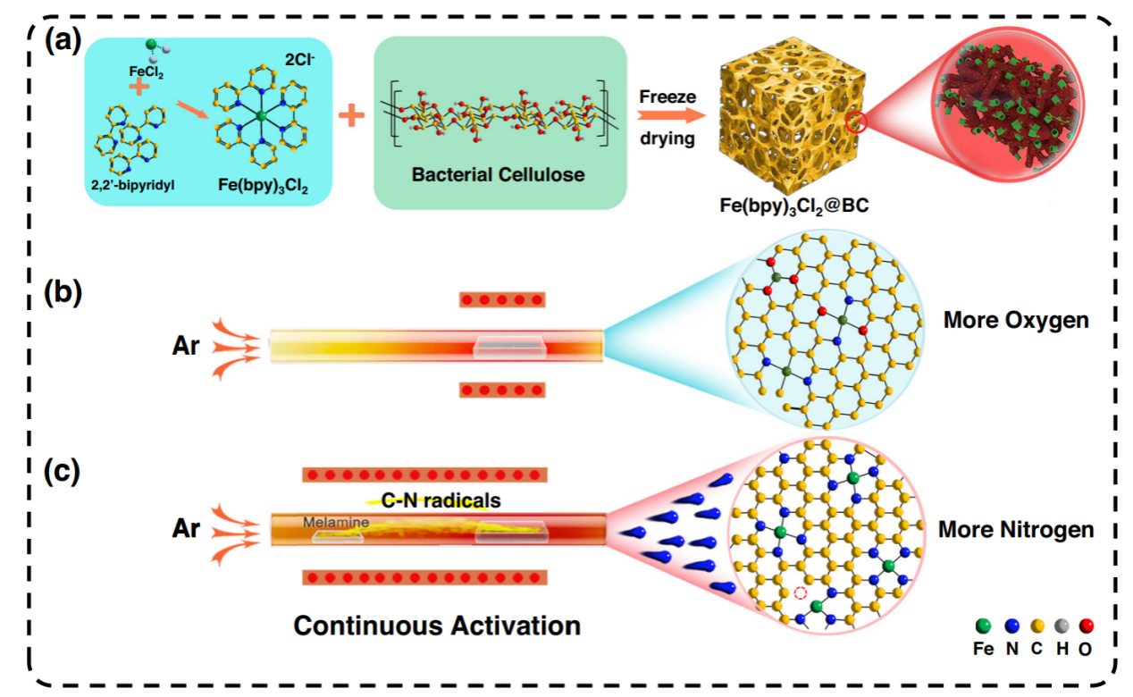 该研究提出了一种连续活化(CA)策略,通过调控Fe的负载密度和配位环境,实现了pH通用的高性能ORR催化剂,并在锌空气电池中展示出卓越的电化学性能。相比传统热解方法,该方法不仅提高了金属单原子的分散性,还优化了Fe-N配位,显著提升了催化活性和稳定性。未来,该策略可推广至其他单原子催化剂体系,如磷(P)、硫(S)等元素的掺杂,进一步拓展其在能源转换和储能设备中的应用,为高效、低成本的催化剂设计提供新的方向。
