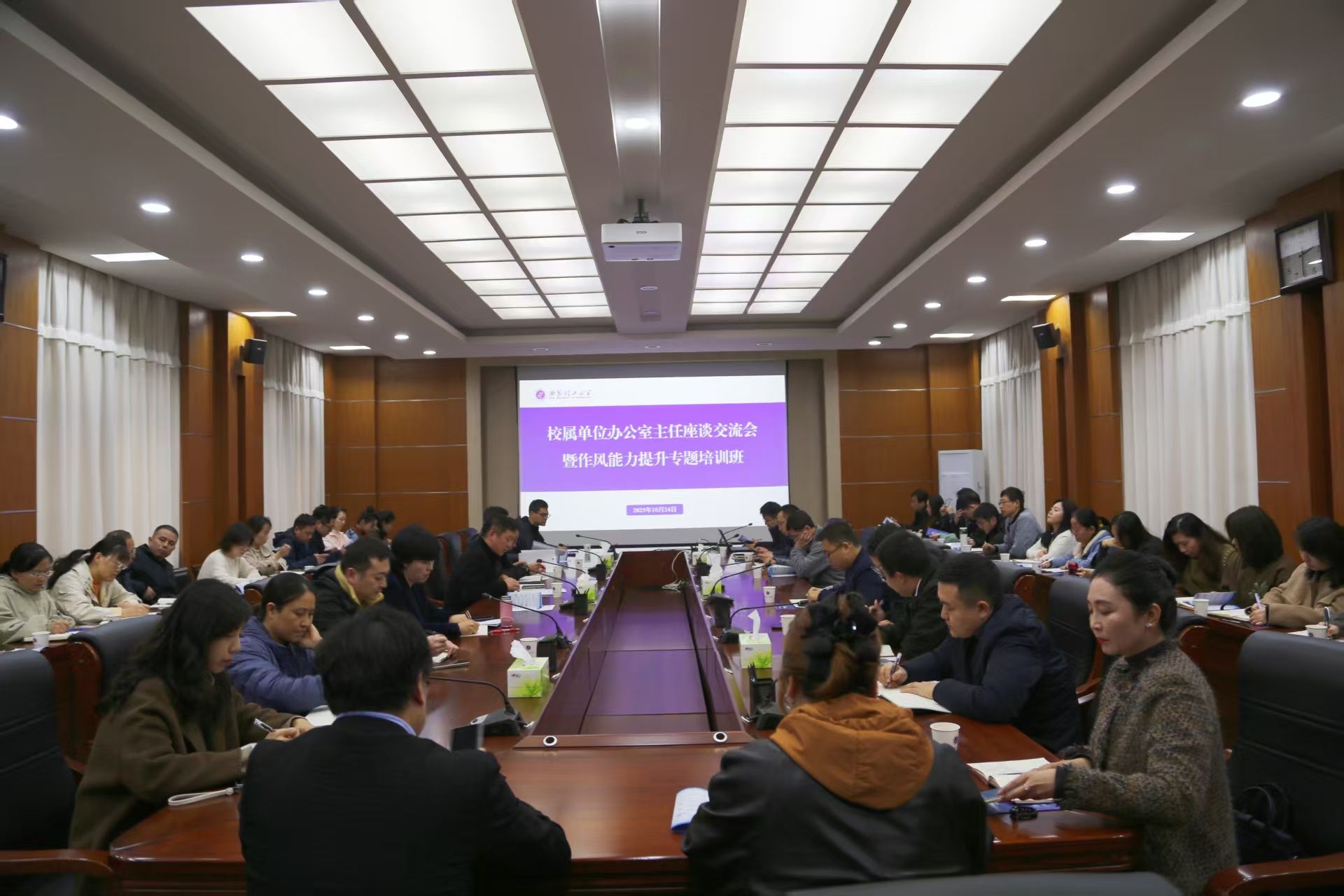 10月24日下午,KY开元在101会议室举办了校属单位办公室主任作风能力提升专题培训暨座谈交流会。